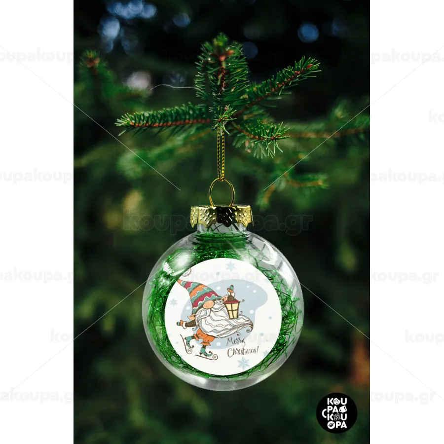 Christmas nordic gnomes, Στολίδι Χριστουγεννιάτικη μπάλα δένδρου διάφανη με πράσινο γέμισμα 8cm