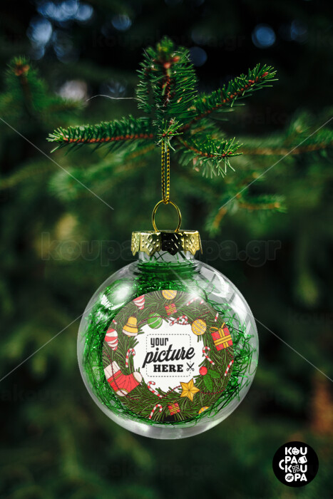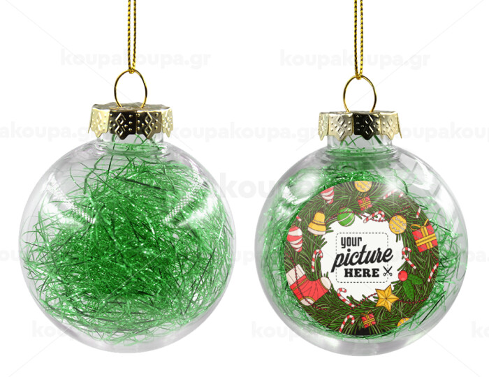 PHOTO Christmas twitch, Στολίδι Χριστουγεννιάτικη μπάλα δένδρου διάφανη με πράσινο γέμισμα 8cm