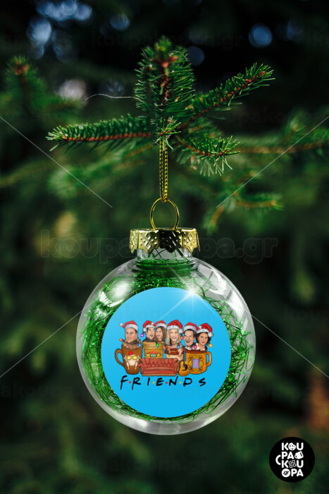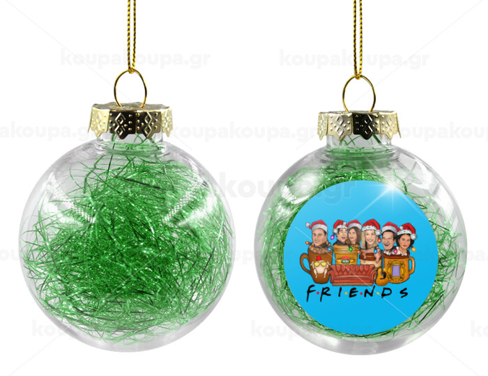 FRIENDS xmas, Στολίδι Χριστουγεννιάτικη μπάλα δένδρου διάφανη με πράσινο γέμισμα 8cm