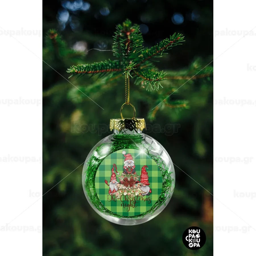Oh Christmas Night, Στολίδι Χριστουγεννιάτικη μπάλα δένδρου διάφανη με πράσινο γέμισμα 8cm