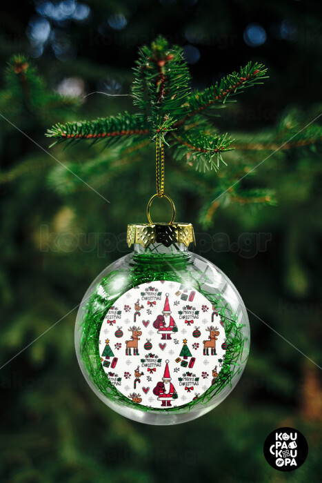 Santas, Deers & Trees, Στολίδι Χριστουγεννιάτικη μπάλα δένδρου διάφανη με πράσινο γέμισμα 8cm