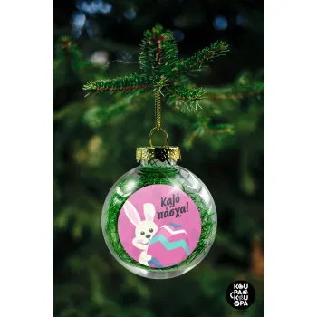 Καλό πάσχα, Στολίδι Χριστουγεννιάτικη μπάλα δένδρου διάφανη με πράσινο γέμισμα 8cm