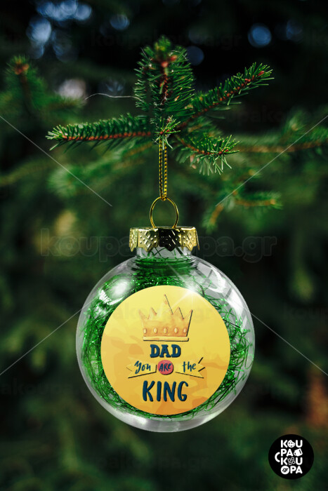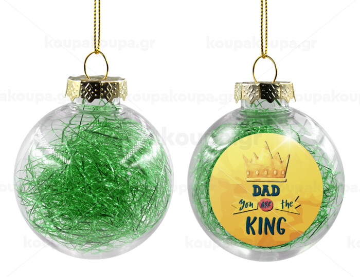 Dad you are the King, Στολίδι Χριστουγεννιάτικη μπάλα δένδρου διάφανη με πράσινο γέμισμα 8cm