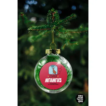 SUPER ΜΠΑΜΠΑΣ, Στολίδι Χριστουγεννιάτικη μπάλα δένδρου διάφανη με πράσινο γέμισμα 8cm