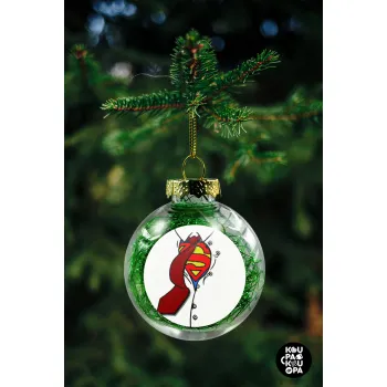 SuperDad, Στολίδι Χριστουγεννιάτικη μπάλα δένδρου διάφανη με πράσινο γέμισμα 8cm