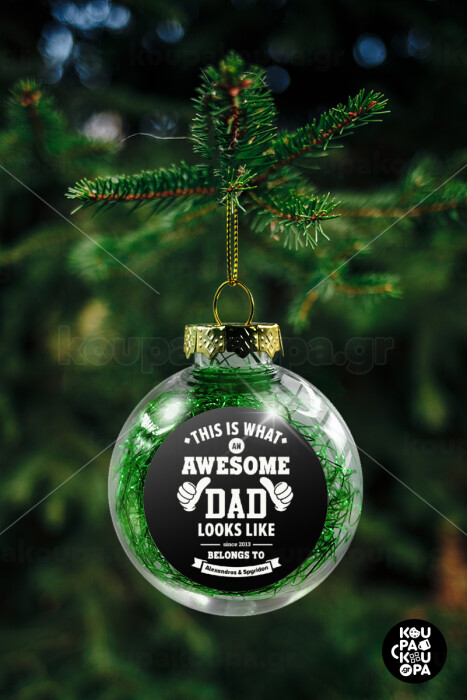 This is what an Awesome DAD looks like, Στολίδι Χριστουγεννιάτικη μπάλα δένδρου διάφανη με πράσινο γέμισμα 8cm