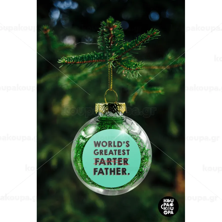 World's greatest farter, Στολίδι Χριστουγεννιάτικη μπάλα δένδρου διάφανη με πράσινο γέμισμα 8cm