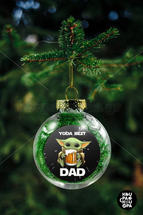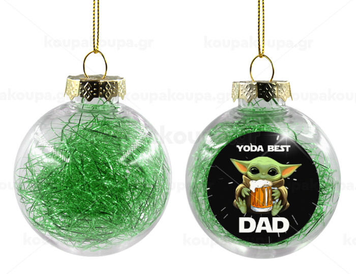 Yoda Best Dad, Στολίδι Χριστουγεννιάτικη μπάλα δένδρου διάφανη με πράσινο γέμισμα 8cm