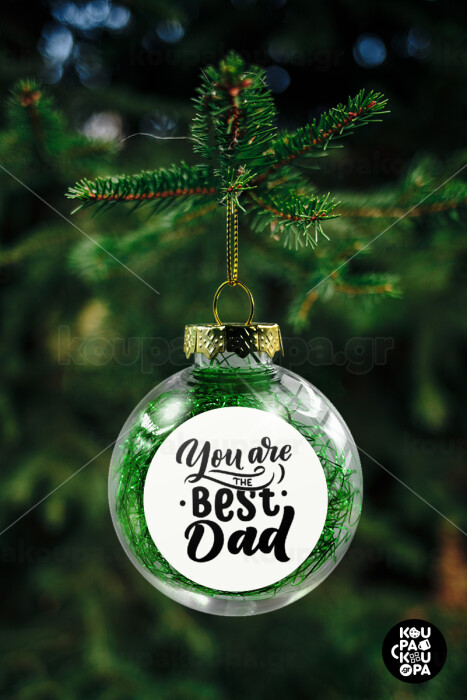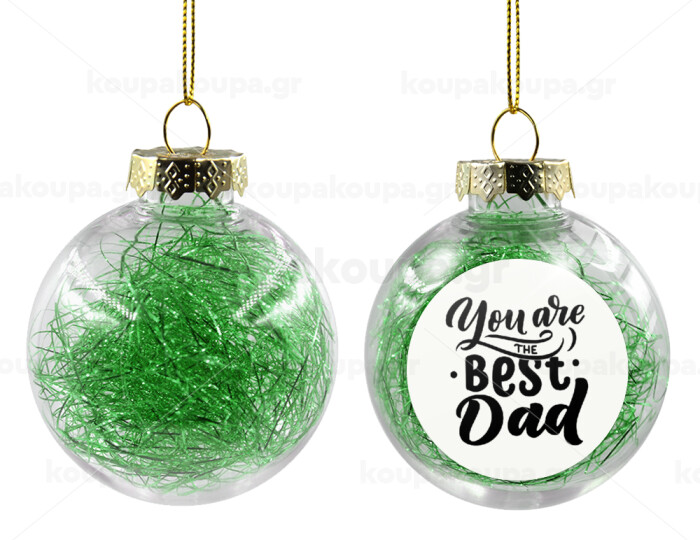 You are the best Dad, Στολίδι Χριστουγεννιάτικη μπάλα δένδρου διάφανη με πράσινο γέμισμα 8cm