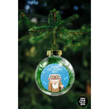 Παππού σε αγαπώ πολύ!, Στολίδι Χριστουγεννιάτικη μπάλα δένδρου διάφανη με πράσινο γέμισμα 8cm