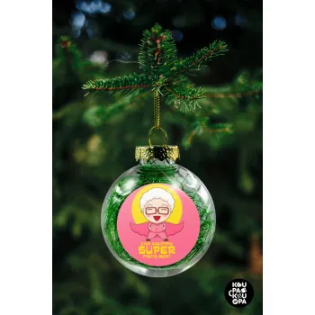 Στην καλύτερη Super γιαγιά μου!, Στολίδι Χριστουγεννιάτικη μπάλα δένδρου διάφανη με πράσινο γέμισμα 8cm