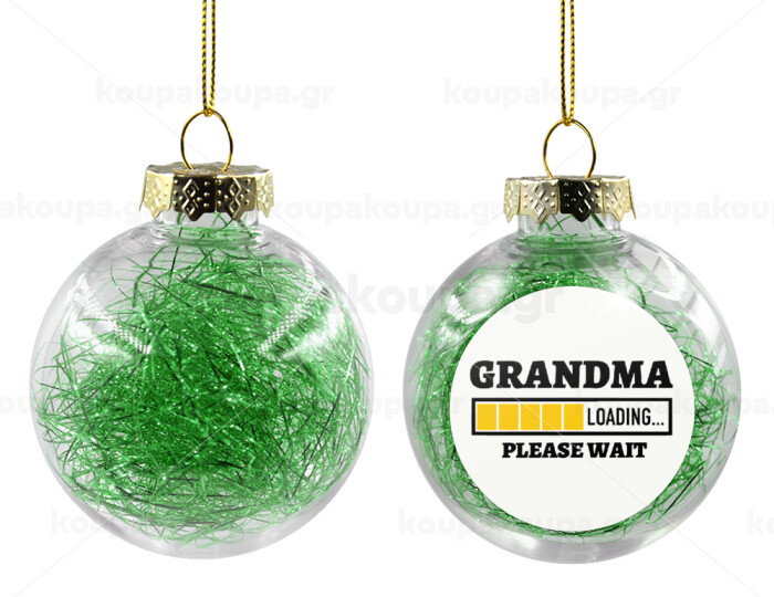 Grandma Loading, Στολίδι Χριστουγεννιάτικη μπάλα δένδρου διάφανη με πράσινο γέμισμα 8cm