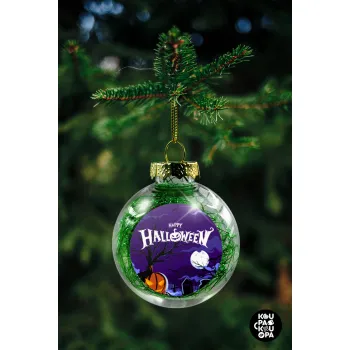 Happy Halloween cemetery, Στολίδι Χριστουγεννιάτικη μπάλα δένδρου διάφανη με πράσινο γέμισμα 8cm