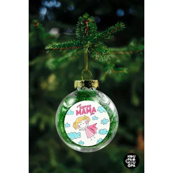 Στην SUPER μαμά μου, comic, Στολίδι Χριστουγεννιάτικη μπάλα δένδρου διάφανη με πράσινο γέμισμα 8cm