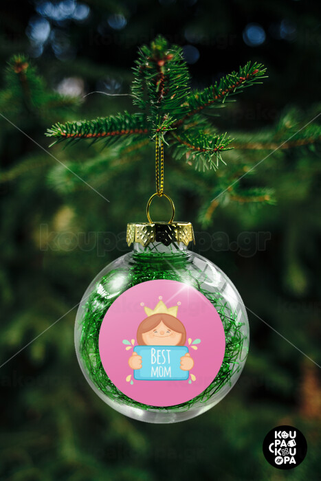 Best mom Princess, Στολίδι Χριστουγεννιάτικη μπάλα δένδρου διάφανη με πράσινο γέμισμα 8cm