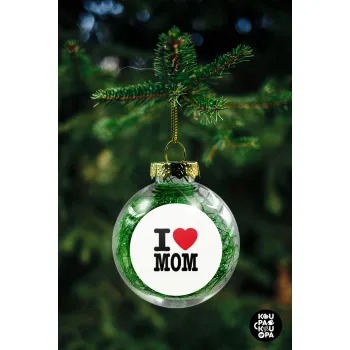 I LOVE MOM, Στολίδι Χριστουγεννιάτικη μπάλα δένδρου διάφανη με πράσινο γέμισμα 8cm