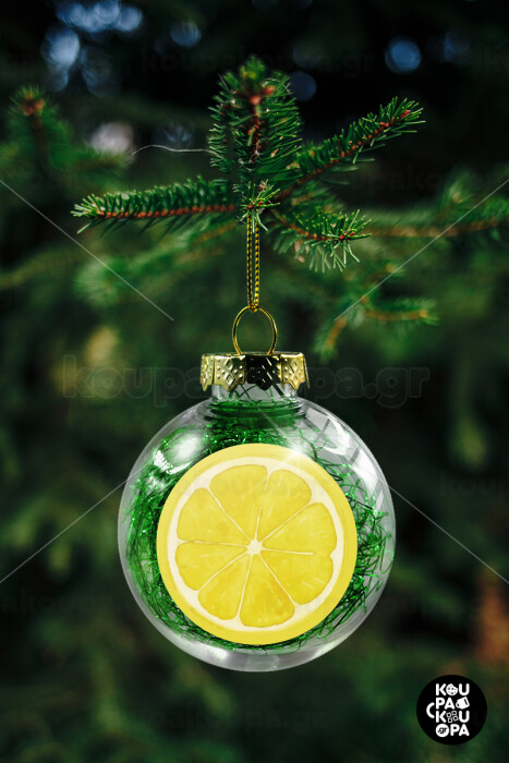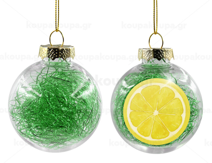 Λεμόνι, Στολίδι Χριστουγεννιάτικη μπάλα δένδρου διάφανη με πράσινο γέμισμα 8cm