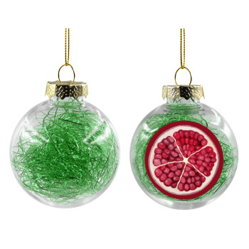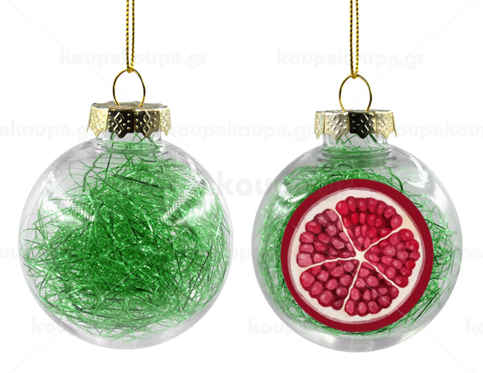Ρόδι, Στολίδι Χριστουγεννιάτικη μπάλα δένδρου διάφανη με πράσινο γέμισμα 8cm