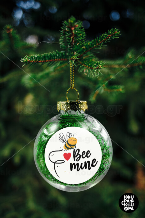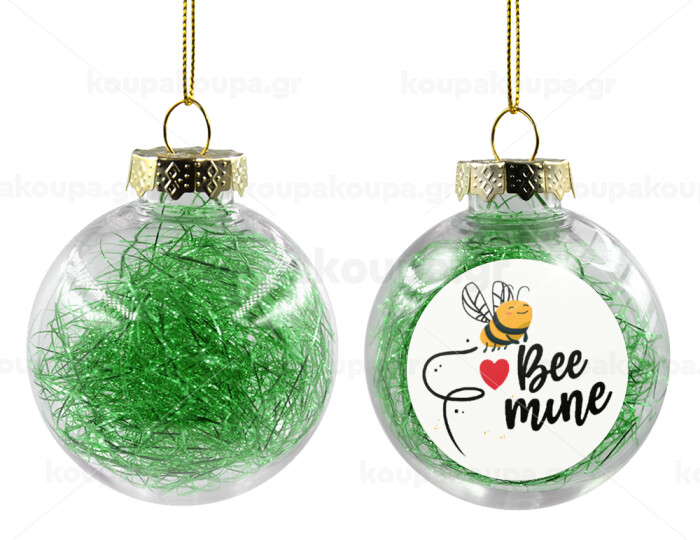 Bee mine!!!, Στολίδι Χριστουγεννιάτικη μπάλα δένδρου διάφανη με πράσινο γέμισμα 8cm