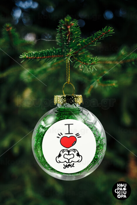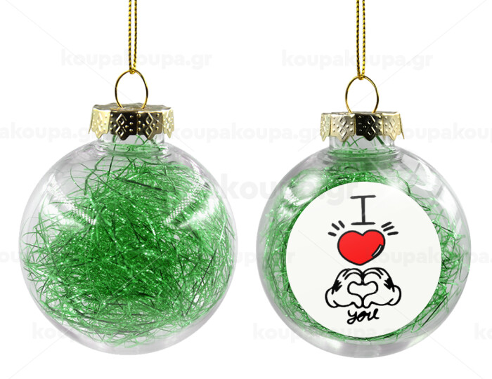 comics hands love, Στολίδι Χριστουγεννιάτικη μπάλα δένδρου διάφανη με πράσινο γέμισμα 8cm