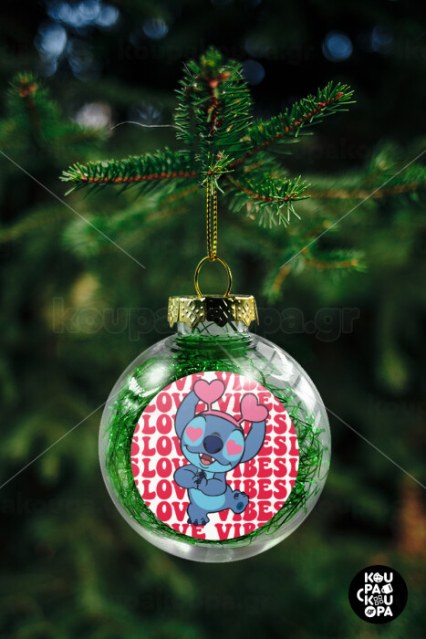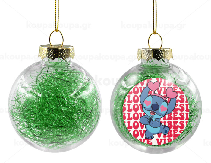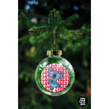 Lilo & Stitch Love vibes, Στολίδι Χριστουγεννιάτικη μπάλα δένδρου διάφανη με πράσινο γέμισμα 8cm