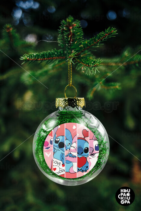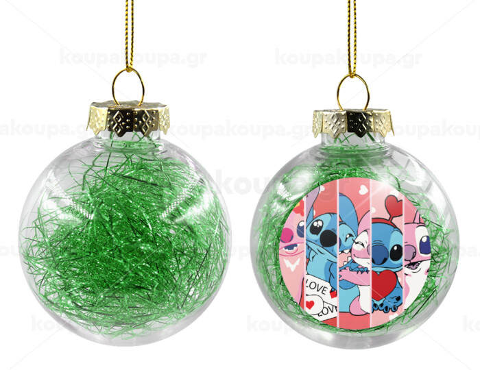Lilo & Stitch Love, Στολίδι Χριστουγεννιάτικη μπάλα δένδρου διάφανη με πράσινο γέμισμα 8cm