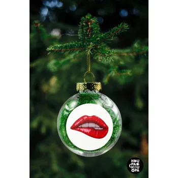 Lips, Στολίδι Χριστουγεννιάτικη μπάλα δένδρου διάφανη με πράσινο γέμισμα 8cm
