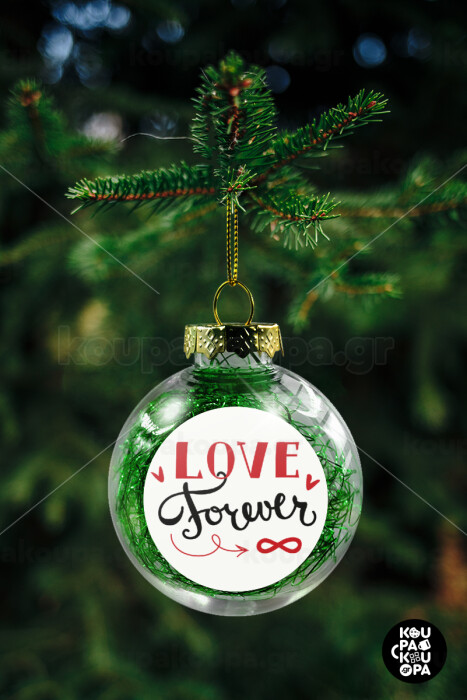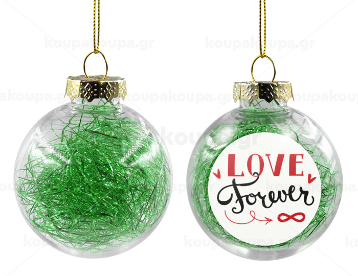 Love forever ∞, Στολίδι Χριστουγεννιάτικη μπάλα δένδρου διάφανη με πράσινο γέμισμα 8cm