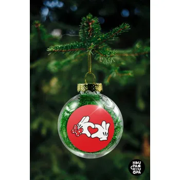Love hands, Στολίδι Χριστουγεννιάτικη μπάλα δένδρου διάφανη με πράσινο γέμισμα 8cm