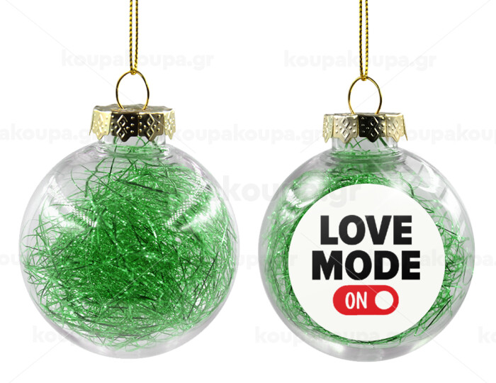 LOVE MODE ON, Στολίδι Χριστουγεννιάτικη μπάλα δένδρου διάφανη με πράσινο γέμισμα 8cm