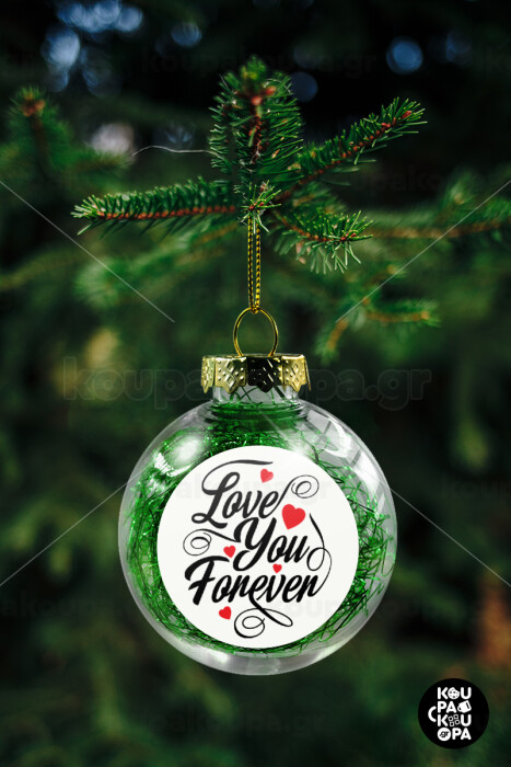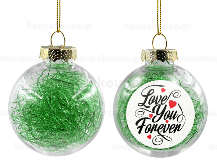 Love you forever, Στολίδι Χριστουγεννιάτικη μπάλα δένδρου διάφανη με πράσινο γέμισμα 8cm
