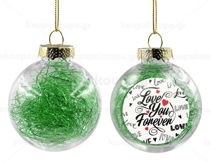 Love You Forever, Στολίδι Χριστουγεννιάτικη μπάλα δένδρου διάφανη με πράσινο γέμισμα 8cm