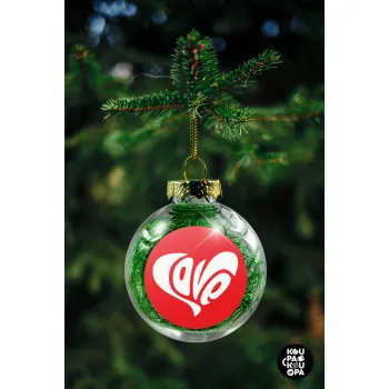 Love, Στολίδι Χριστουγεννιάτικη μπάλα δένδρου διάφανη με πράσινο γέμισμα 8cm