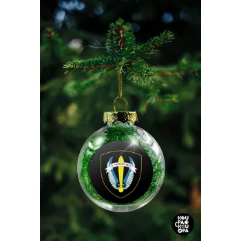 Έμβλημα Μονάδων Καταδρομών Ο Τολμων Νικα - Λοκ, Στολίδι Χριστουγεννιάτικη μπάλα δένδρου διάφανη με πράσινο γέμισμα 8cm
