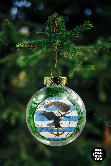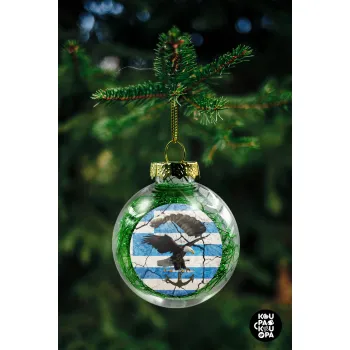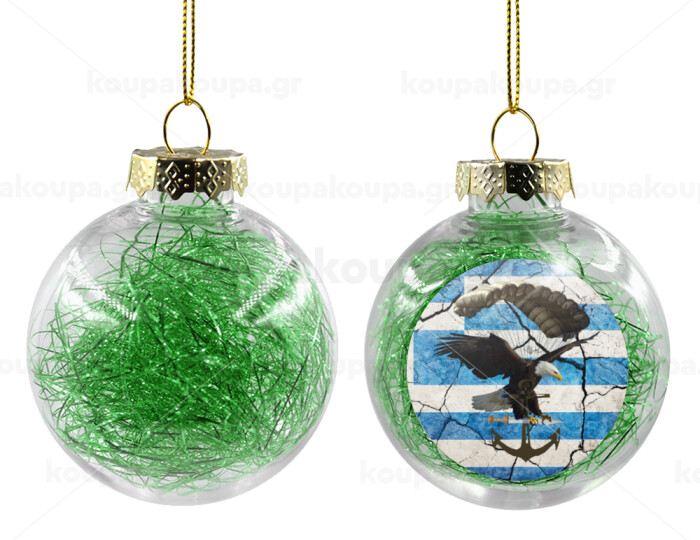 Hellas army αετός, Στολίδι Χριστουγεννιάτικη μπάλα δένδρου διάφανη με πράσινο γέμισμα 8cm