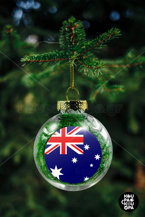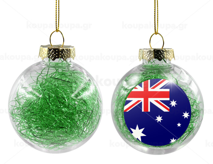 Australia flag, Στολίδι Χριστουγεννιάτικη μπάλα δένδρου διάφανη με πράσινο γέμισμα 8cm