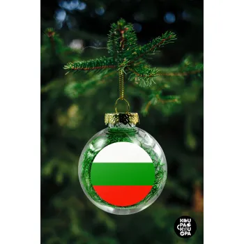 Bulgaria flag, Στολίδι Χριστουγεννιάτικη μπάλα δένδρου διάφανη με πράσινο γέμισμα 8cm