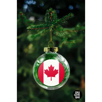 Canada flag, Στολίδι Χριστουγεννιάτικη μπάλα δένδρου διάφανη με πράσινο γέμισμα 8cm