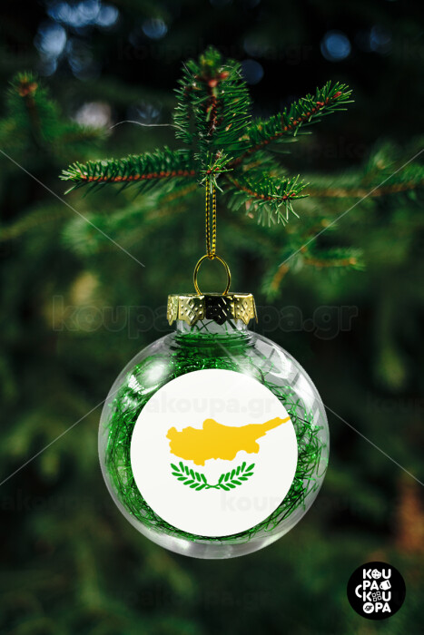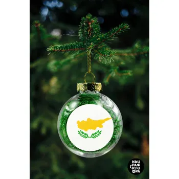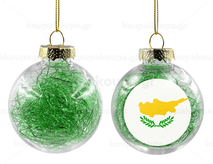Cyprus flag, Στολίδι Χριστουγεννιάτικη μπάλα δένδρου διάφανη με πράσινο γέμισμα 8cm