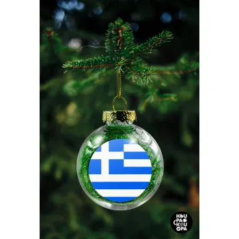 Greece flag, Στολίδι Χριστουγεννιάτικη μπάλα δένδρου διάφανη με πράσινο γέμισμα 8cm