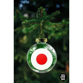 Japan flag, Στολίδι Χριστουγεννιάτικη μπάλα δένδρου διάφανη με πράσινο γέμισμα 8cm