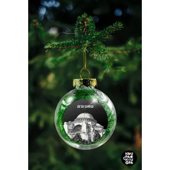 Αγία Σοφιά, Στολίδι Χριστουγεννιάτικη μπάλα δένδρου διάφανη με πράσινο γέμισμα 8cm