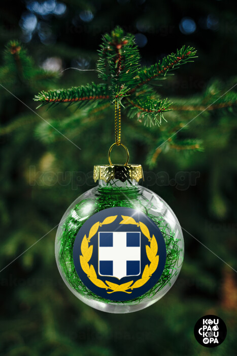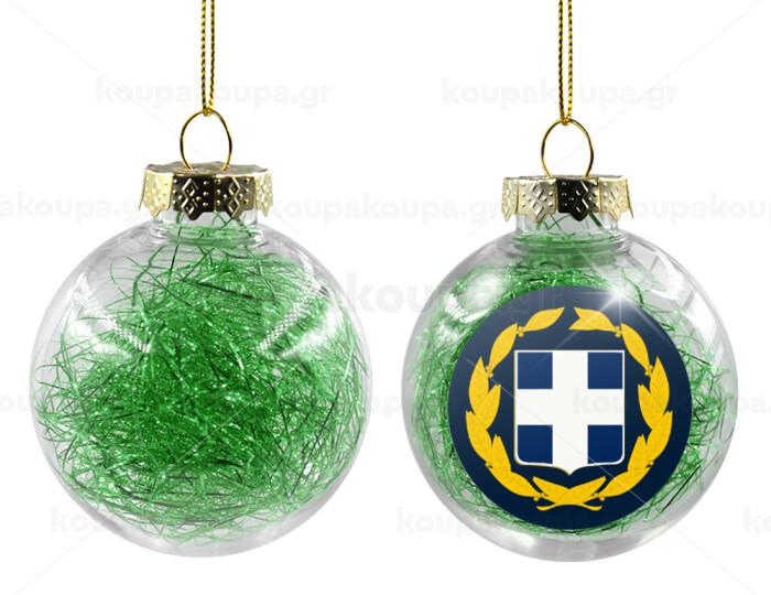 Hellas Εθνόσημο, Στολίδι Χριστουγεννιάτικη μπάλα δένδρου διάφανη με πράσινο γέμισμα 8cm
