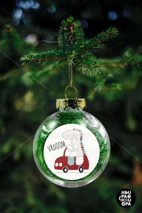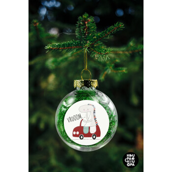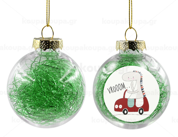 Βρουμ βρουμ, Στολίδι Χριστουγεννιάτικη μπάλα δένδρου διάφανη με πράσινο γέμισμα 8cm