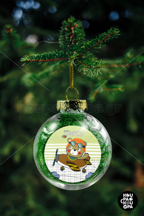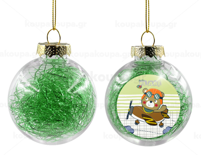 Ο μικρός αεροπόρος, Στολίδι Χριστουγεννιάτικη μπάλα δένδρου διάφανη με πράσινο γέμισμα 8cm