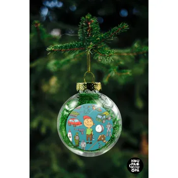 Toys Boy, Στολίδι Χριστουγεννιάτικη μπάλα δένδρου διάφανη με πράσινο γέμισμα 8cm
