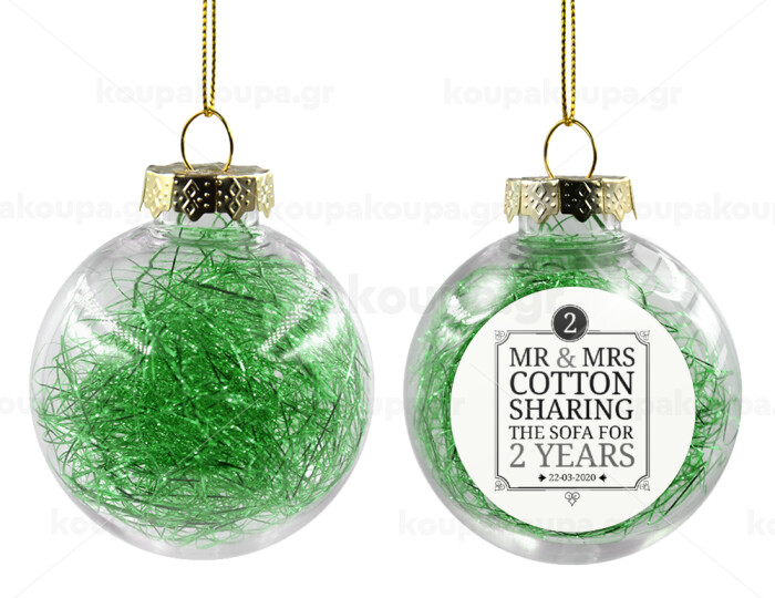 Mr & Mrs Sharing the sofa, Στολίδι Χριστουγεννιάτικη μπάλα δένδρου διάφανη με πράσινο γέμισμα 8cm