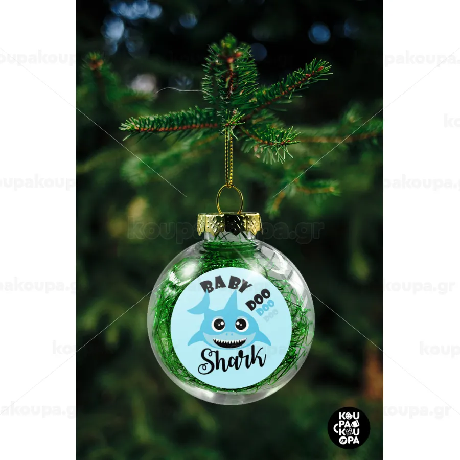 Baby Shark (boy), Στολίδι Χριστουγεννιάτικη μπάλα δένδρου διάφανη με πράσινο γέμισμα 8cm
