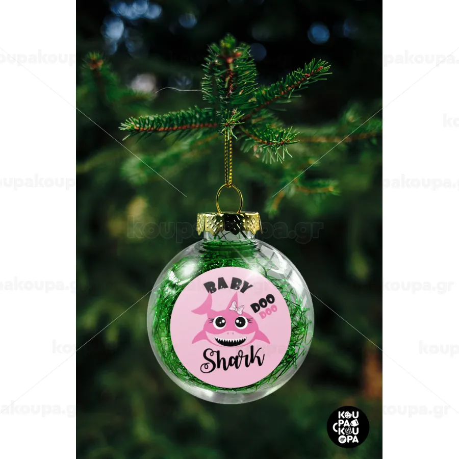 Baby Shark (girl), Στολίδι Χριστουγεννιάτικη μπάλα δένδρου διάφανη με πράσινο γέμισμα 8cm