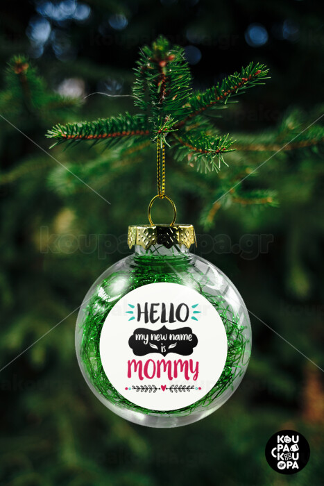 Hello, my new name is Mommy, Στολίδι Χριστουγεννιάτικη μπάλα δένδρου διάφανη με πράσινο γέμισμα 8cm